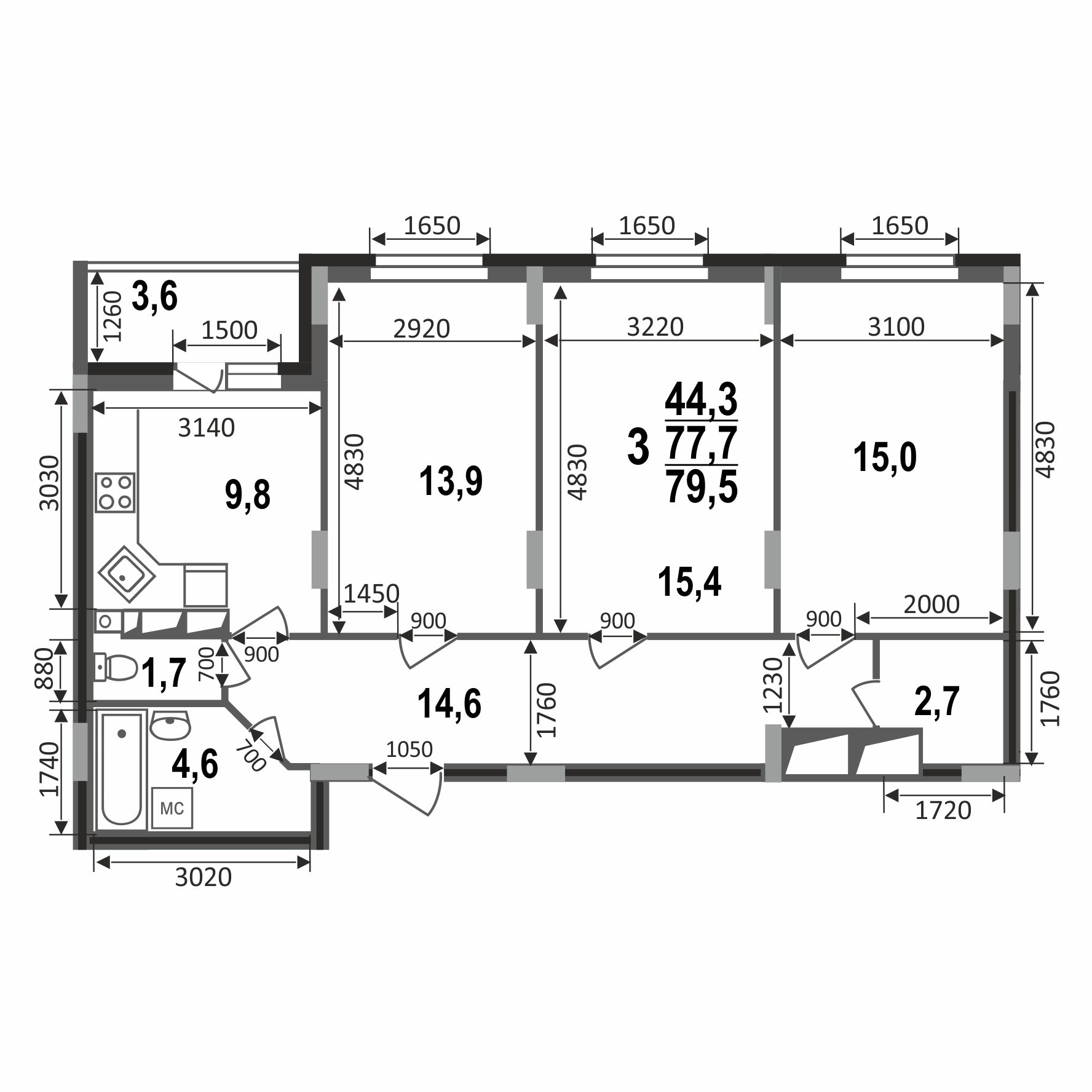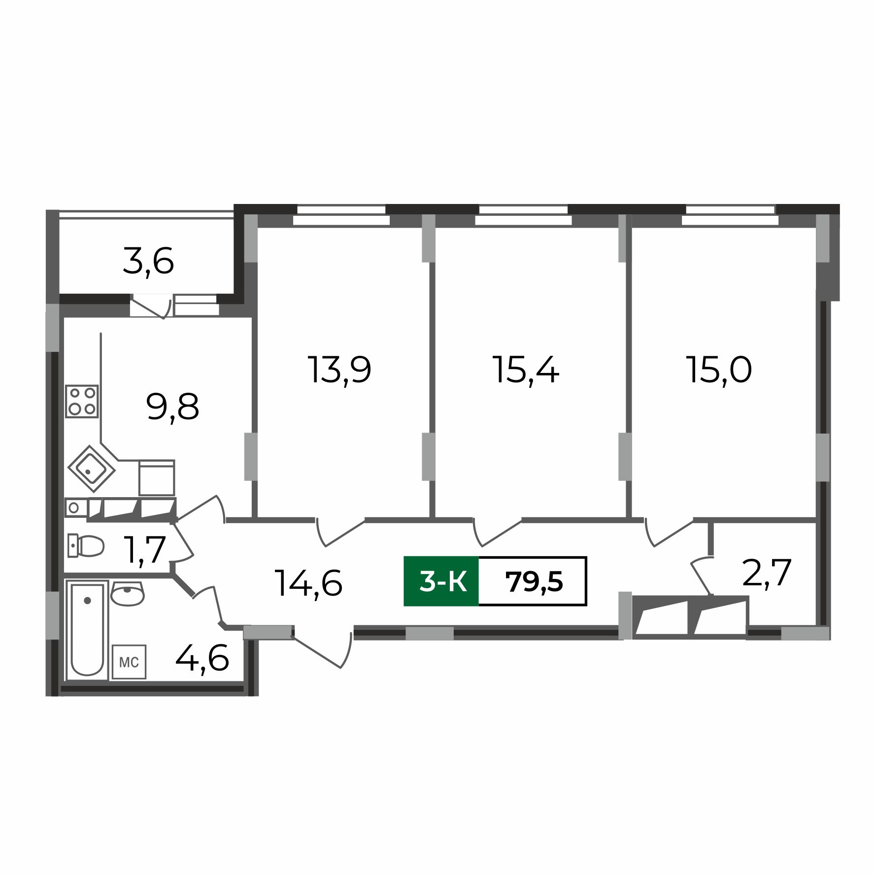 Идеальное пространство для вашей семьи - трёхкомнатная квартира 79,5 кв.м.