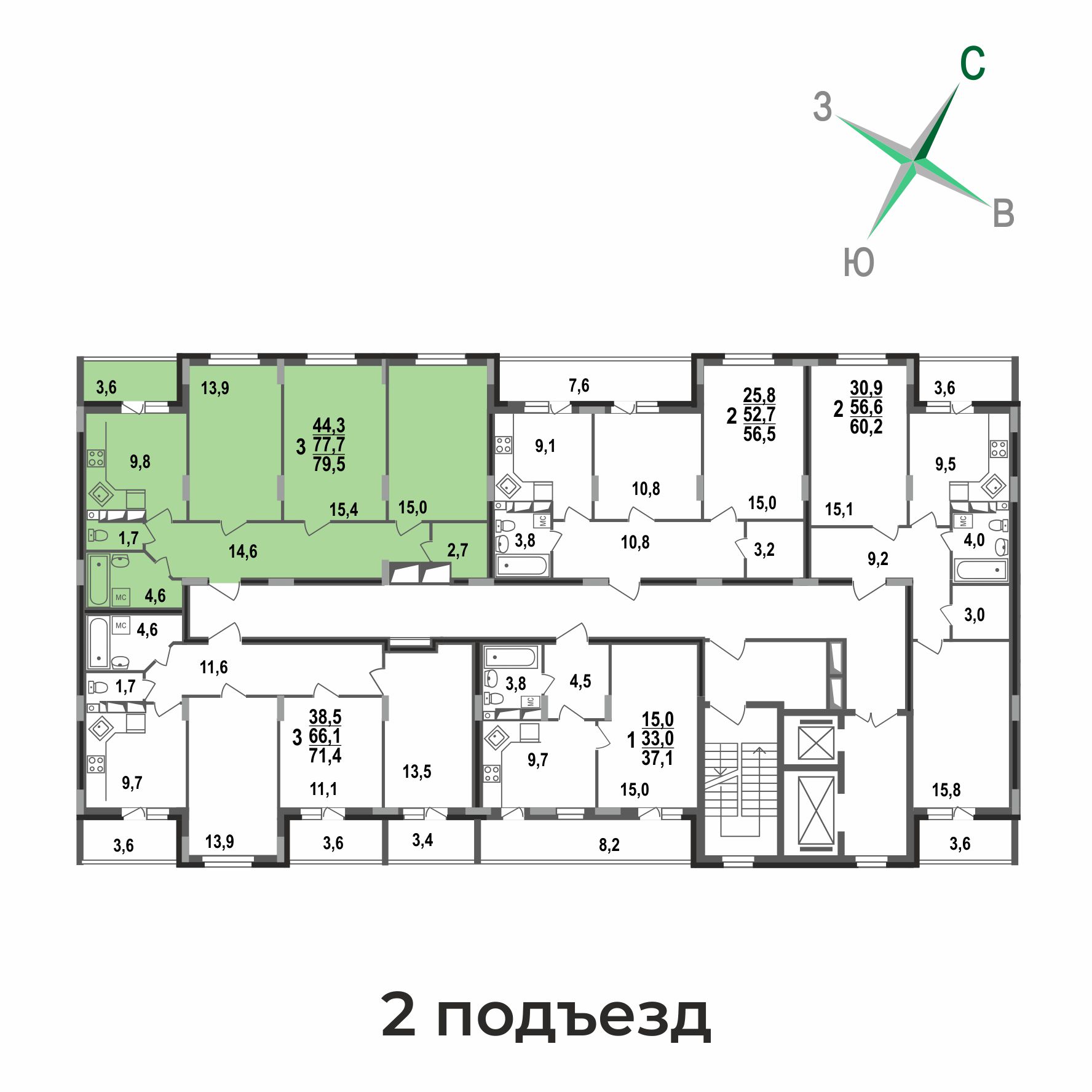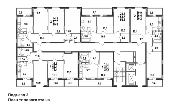 - 2 лифта в каждом подъезде