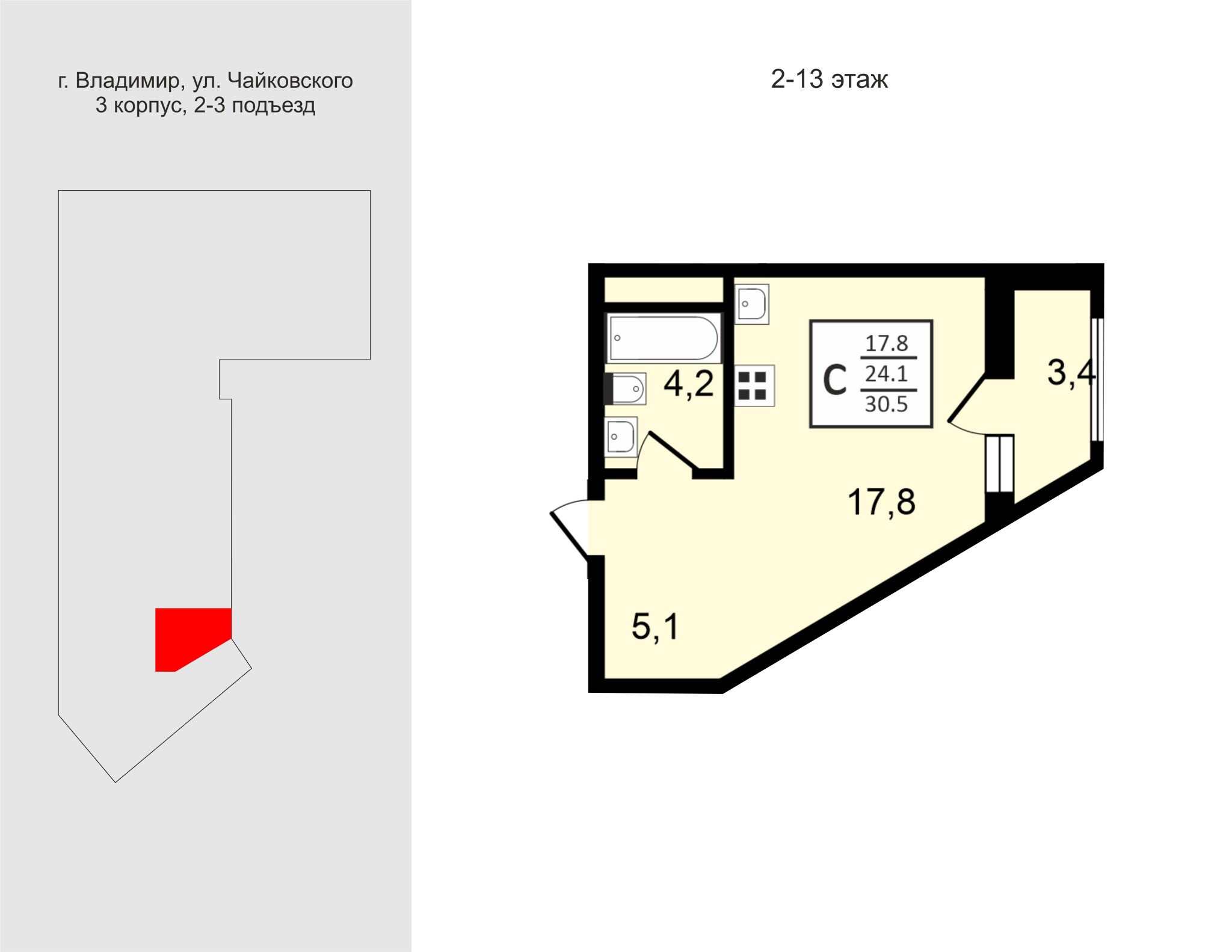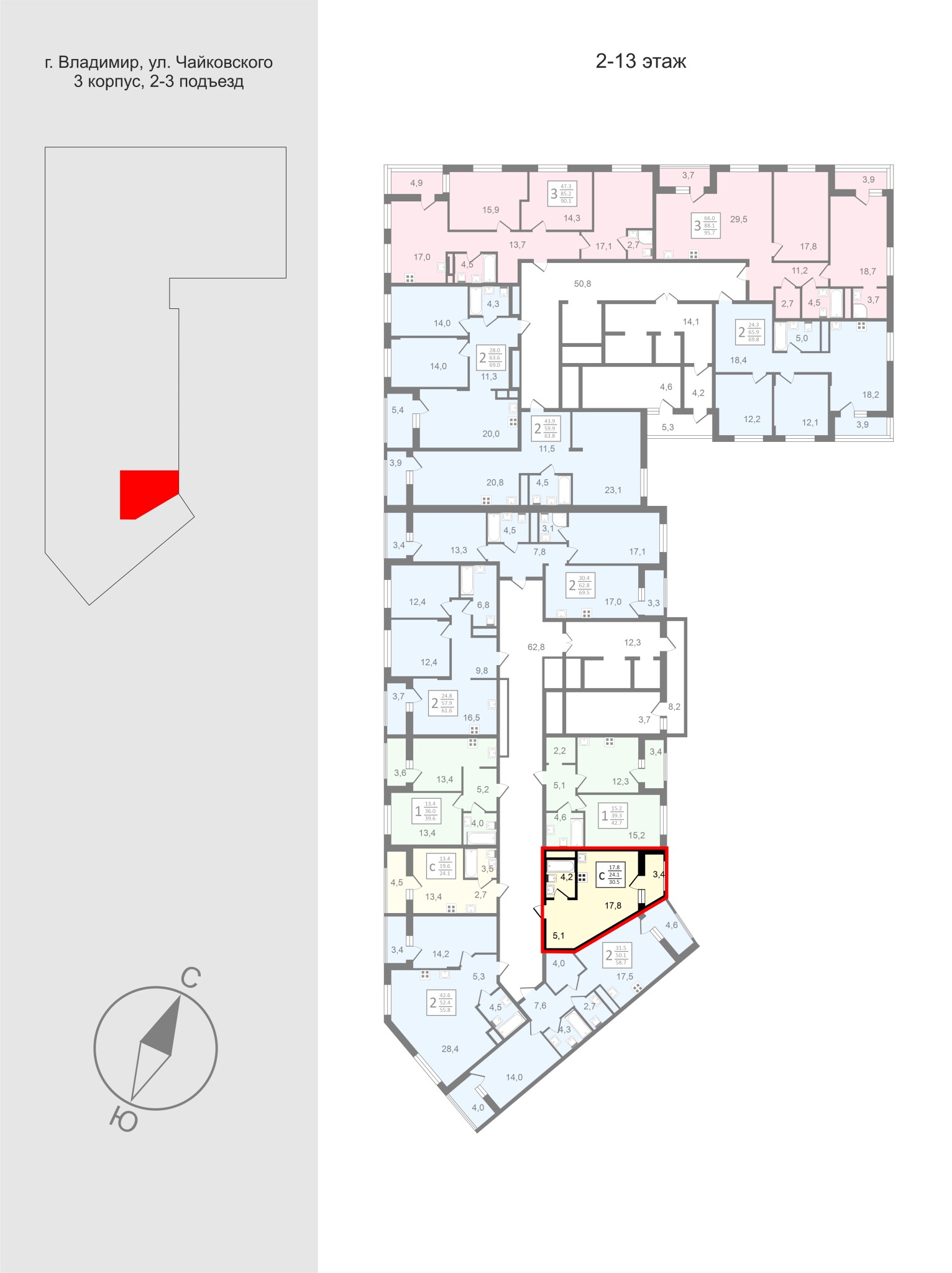 Корпус 3 - 3 подъезда, 1 подъезд - 17 этаже, 2 подъезд - 13 этажей, 3 подъезд - 10 этажей, всего 269 квартир, 1 этаж - нежилые помещения.В каждом подъезде 2 лифта, на 1 этаже располагаются колясочные