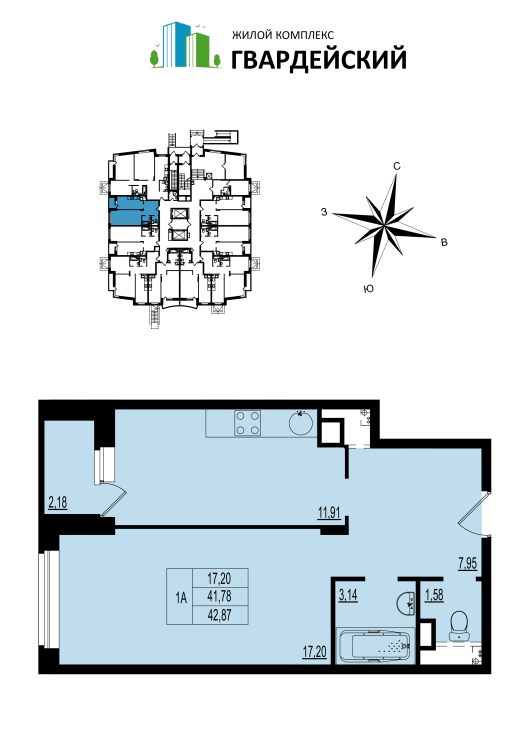 ЖК "Гвардейский" это 17 жилых домов разной этажности, расположенных в мкр. Юрьевец.