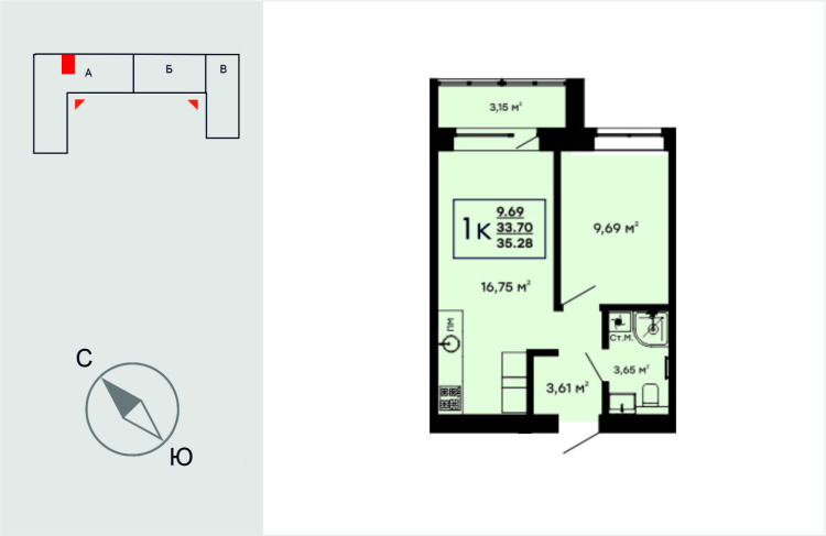 1-комнатные квартиры - 77
