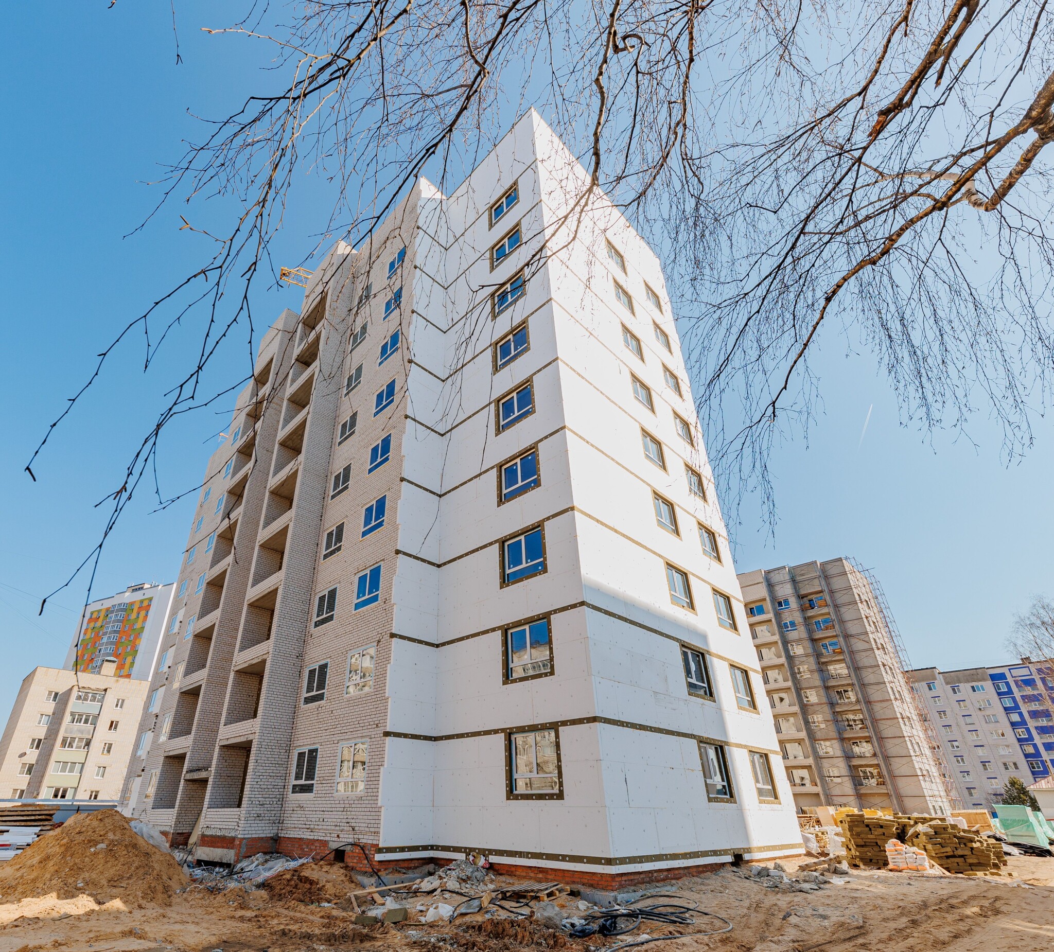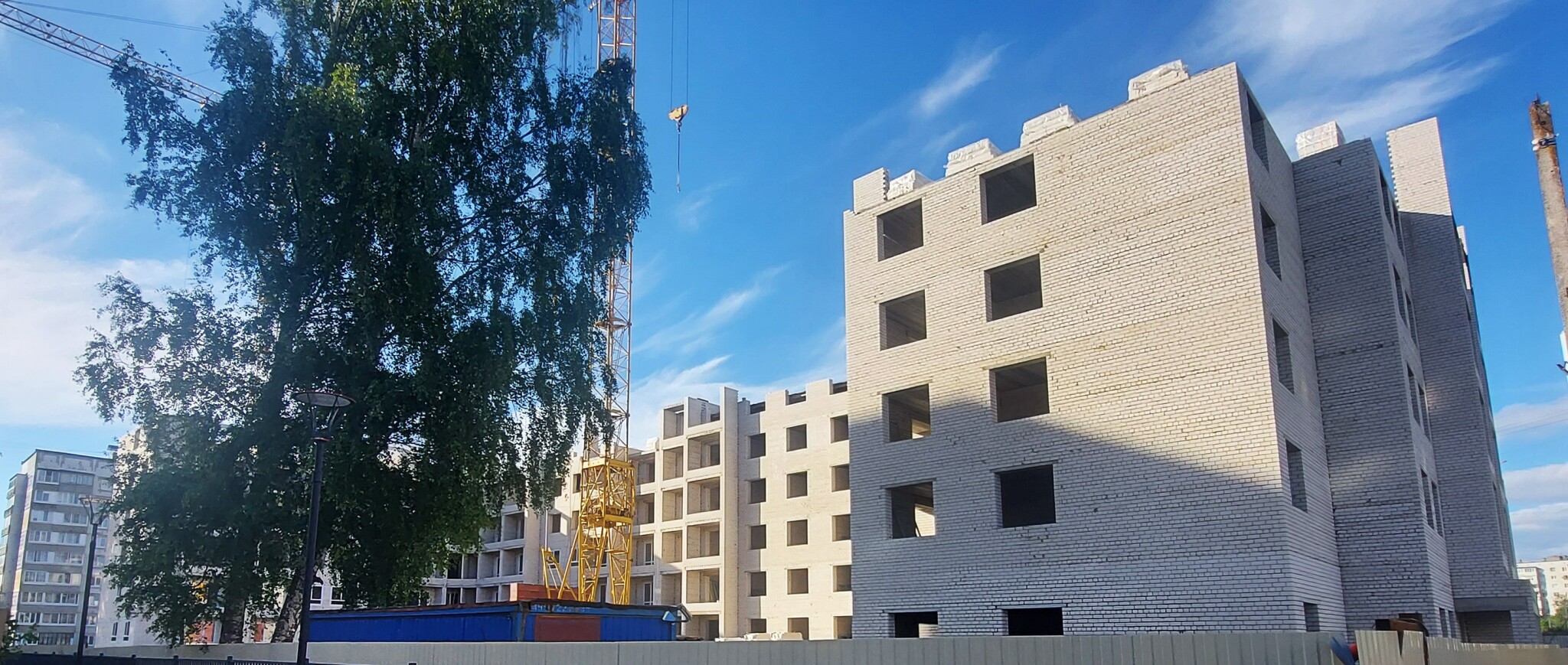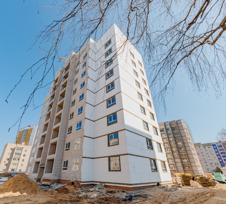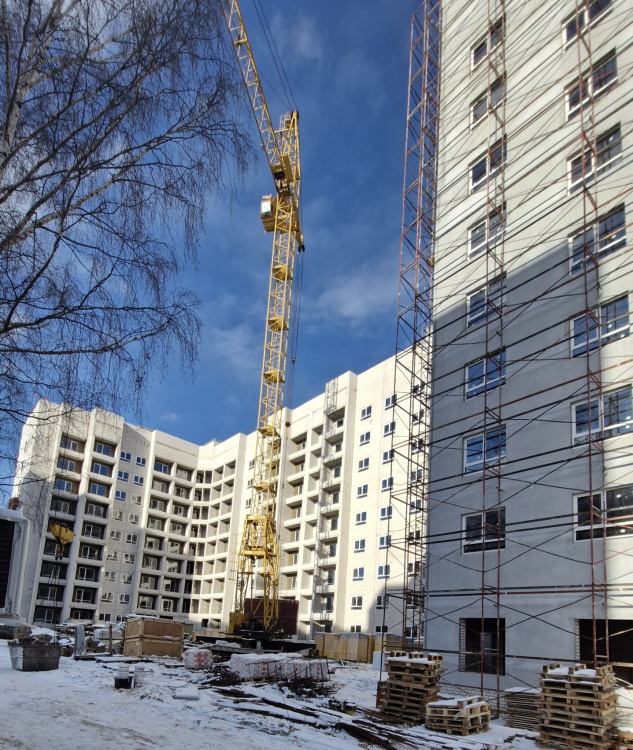 Полностью кирпичный 2-секционный 10-этажный дом с собственной крышной котельной на 219 квартир.Наружная отделка здания предусмотрена из минераловатных жестких плит толщиной 120 мм и последующей декоративной штукатуркой типа “Короед” по системе «Сэнарджи» В каждой секции по 2 грузопассажирских лифта и по 3 входных группы.В каждом подъезде есть просторная колясочная. В доме 1 подвальный этаж с кладовыми помещениями и 9 жилых этажей.