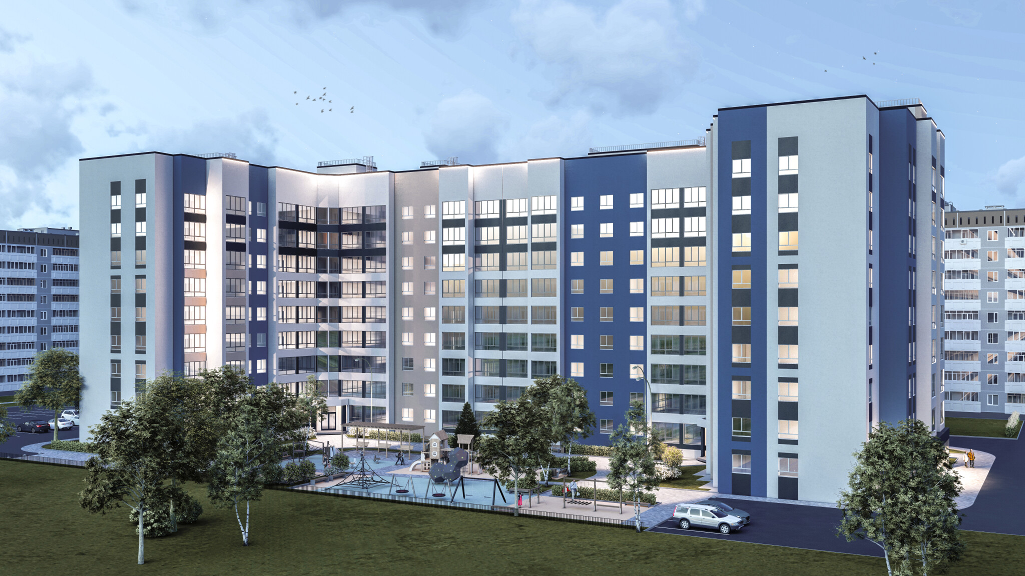 Все квартиры сдаются с предчистовой отделкой ( стяжка,электроразводка,штукатурка,шпатлевка и грунтовка стен, подоконники,откосы,качественные входные двери, лоджии остекленные в едином стиле по проекту c панорамным остеклением. Квартиры оснащаются электрическими плитами.Двор будет оснащен современной детской и спортивной площадкой, видеонаблюдением,отдельными гостевыми парковками в количестве 96 шт. Подъезды будут оснащены видеодомофонами, входы в подъезды безбарьерные