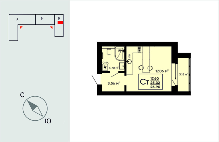 1-комнатные квартиры - 77