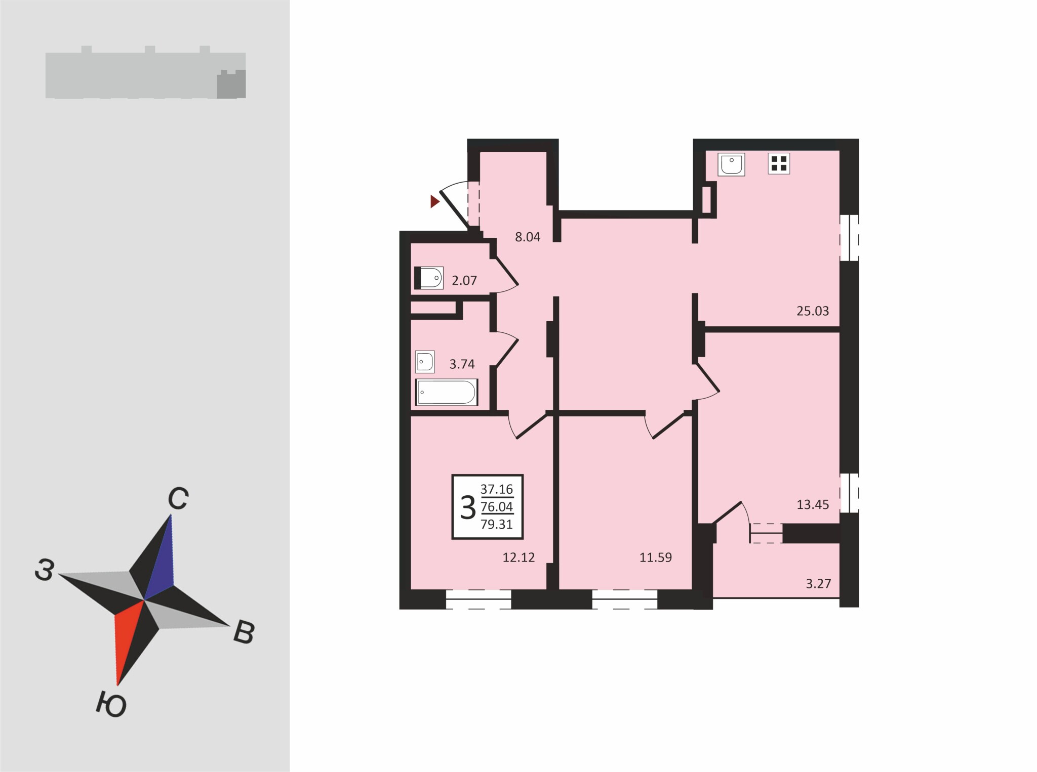 3ккв от 79,31 до 85,25 кв.м.