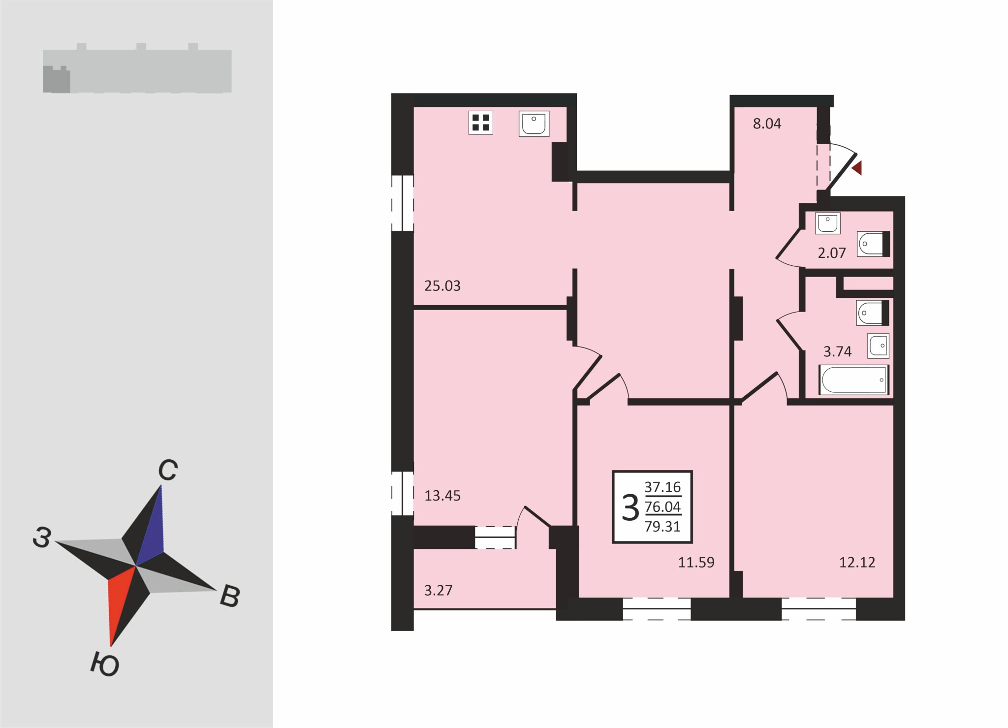 Технический этаж – пространство для прокладки коммуникаций, с высотой помещений: 2,25 м – 1 секция (2,2м - технические помещения 1 секции), 1,80 м - 2 и 3 секция.