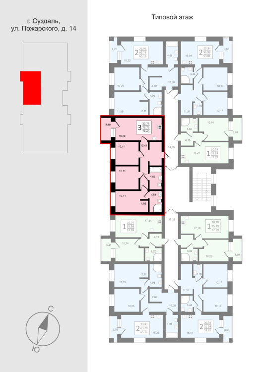 Трехэтажный кирпичный дом комфорт класса с индивидуальным отоплением в каждой квартире ( газовый котел) на 24 квартиры в ЖК Всполье в г.Суздале в районе ул.Пожарского д 14.
