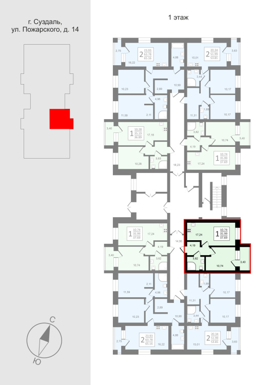 Трехэтажный кирпичный дом комфорт класса с индивидуальным отоплением в каждой квартире ( газовый котел) на 24 квартиры в ЖК Всполье в г.Суздале в районе ул.Пожарского д 14.