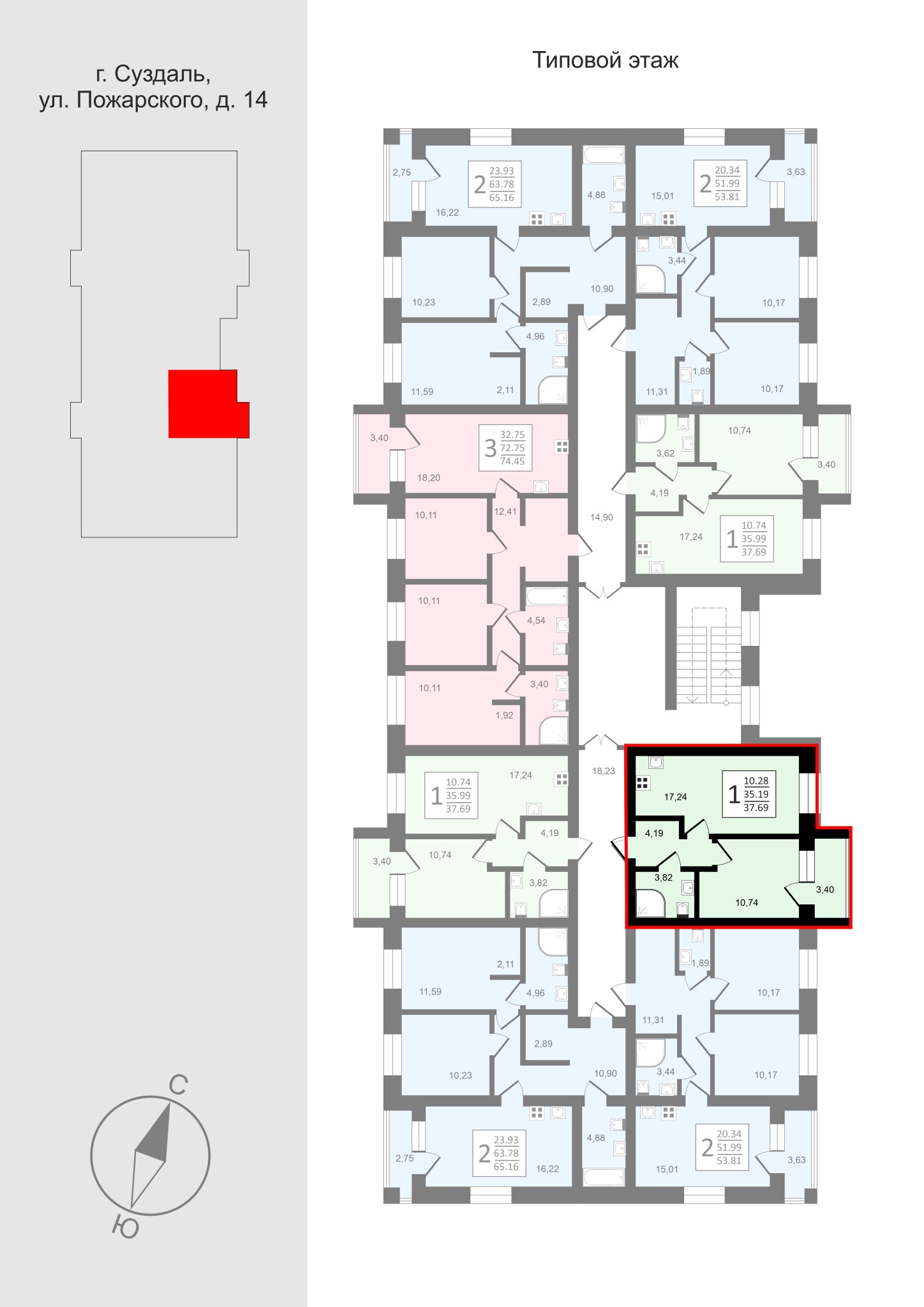 Трехэтажный кирпичный дом комфорт класса с индивидуальным отоплением в каждой квартире ( газовый котел) на 24 квартиры в ЖК Всполье в г.Суздале в районе ул.Пожарского д 14.