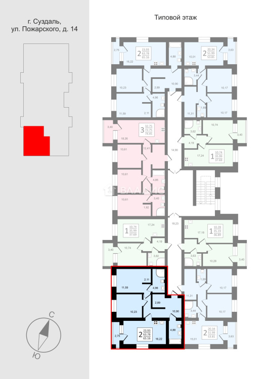Трехэтажный кирпичный дом комфорт класса с индивидуальным отоплением в каждой квартире ( газовый котел) на 24 квартиры в ЖК Всполье в г. Суздале в районе ул. Пожарского д 14.
