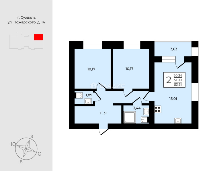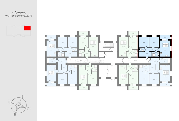 Трехэтажный кирпичный дом комфорт класса с индивидуальным отоплением в каждой квартире ( газовый котел) на 24 квартиры в ЖК Всполье в г.Суздале в районе ул.Пожарского д 14.