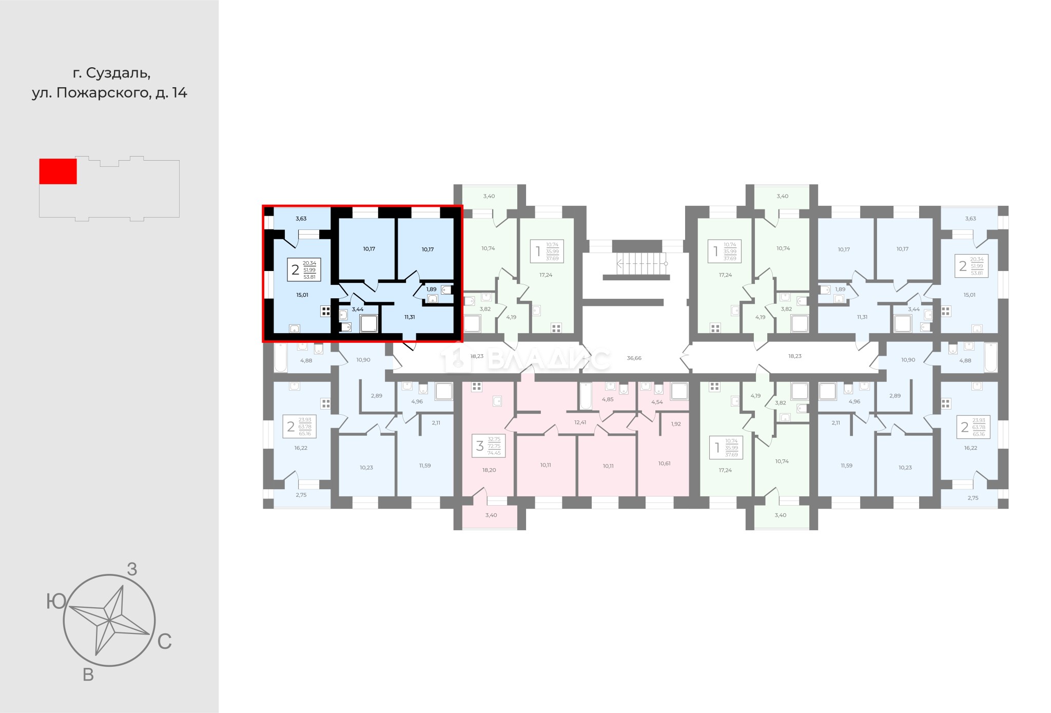 Трехэтажный кирпичный дом комфорт класса с индивидуальным отоплением в каждой квартире ( газовый котел) на 24 квартиры в ЖК Всполье в г.Суздале в районе ул.Пожарского д 14.