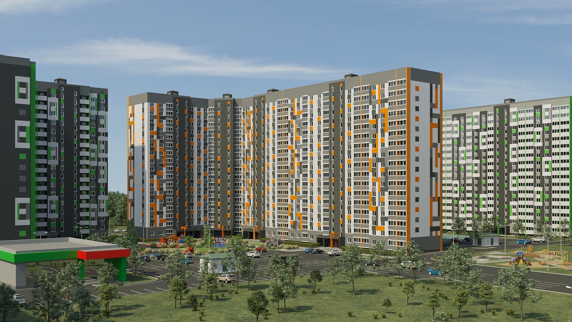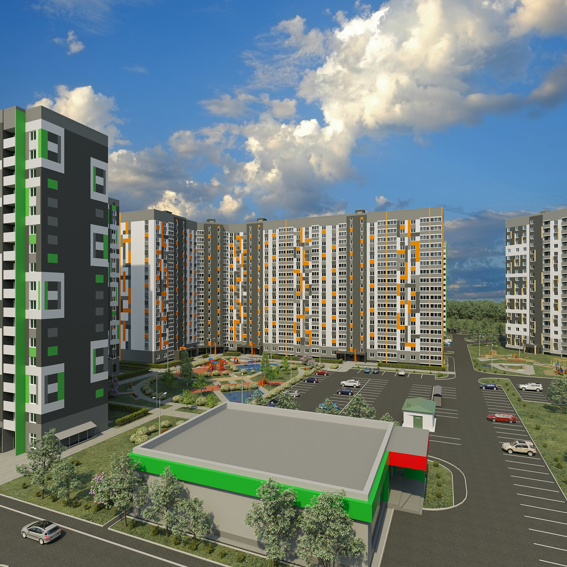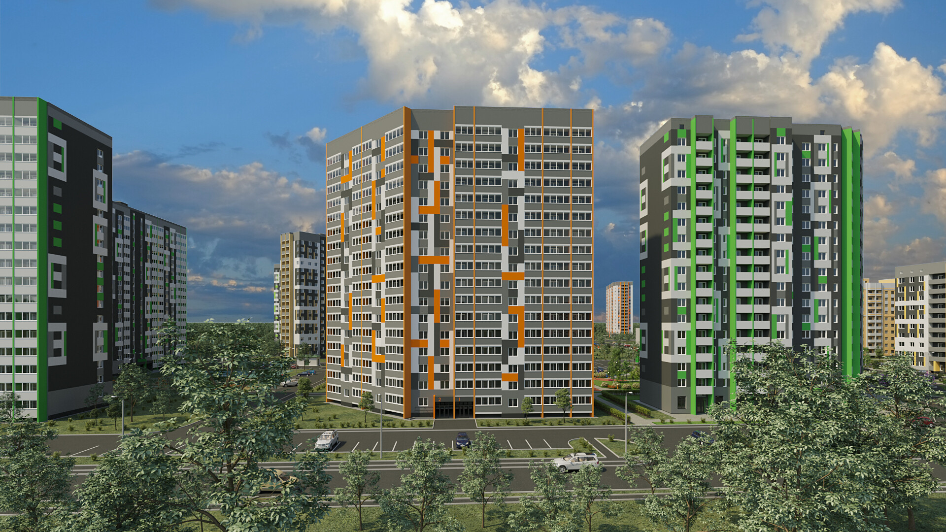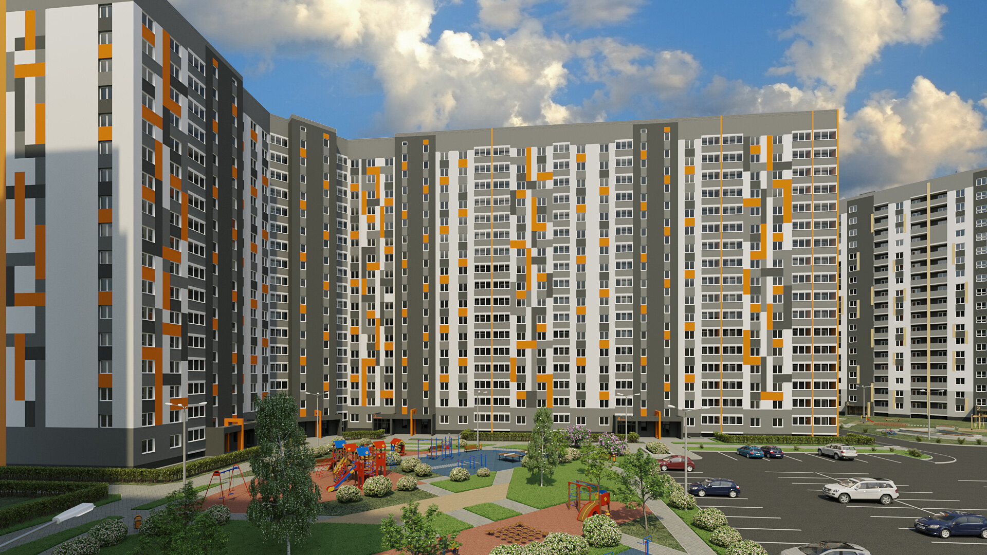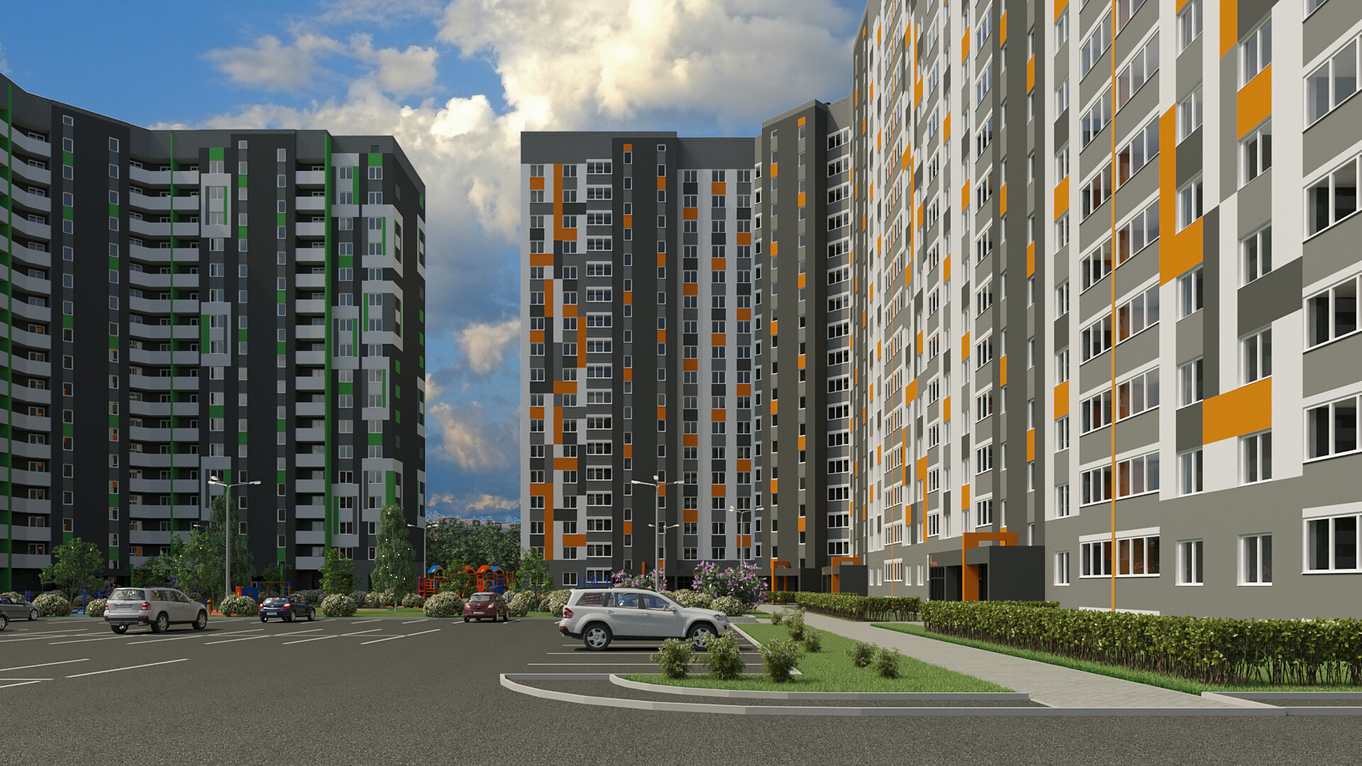 *Двор без машин и уютными пешеходными, ингровыми и спортивными зонами