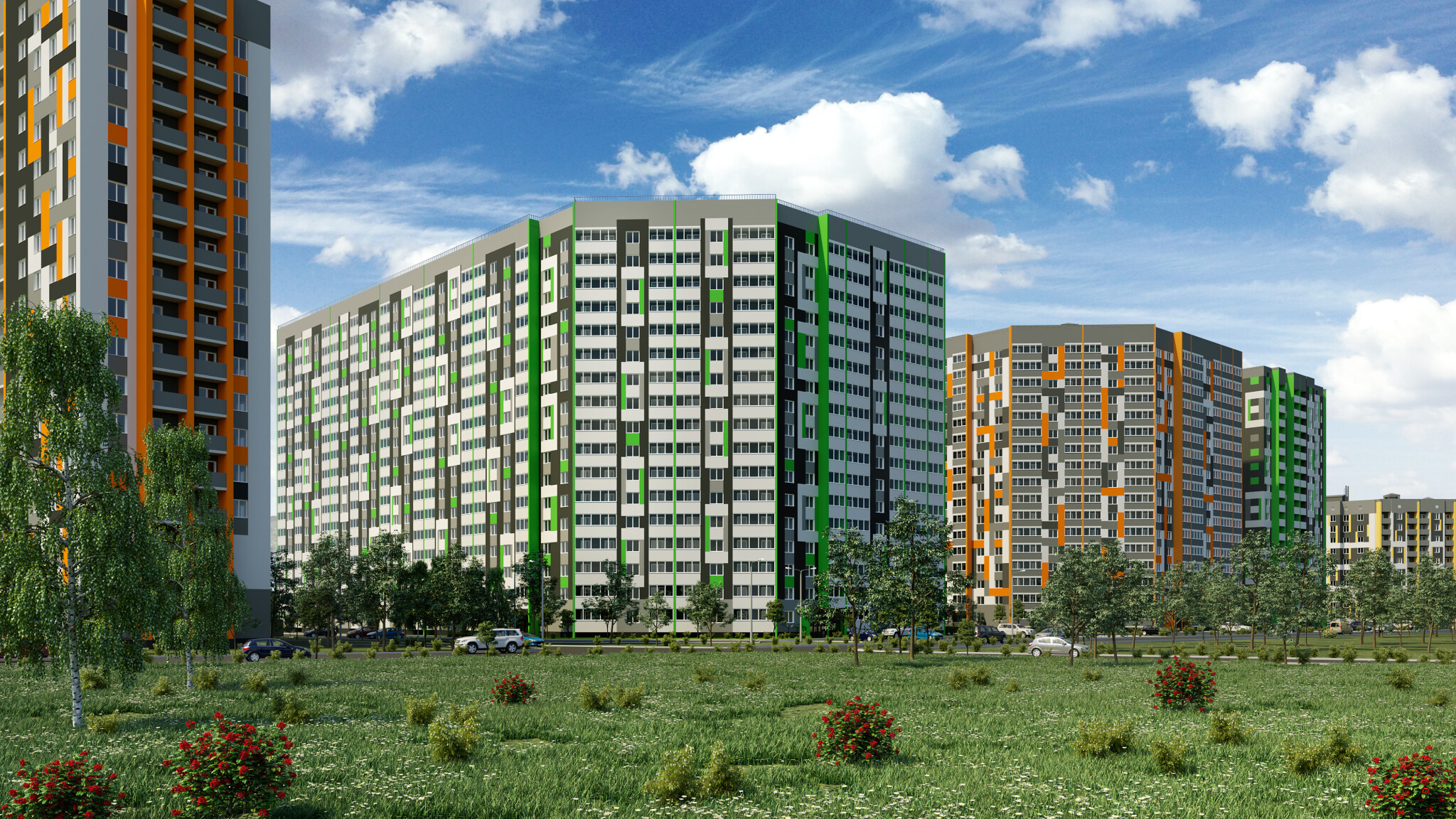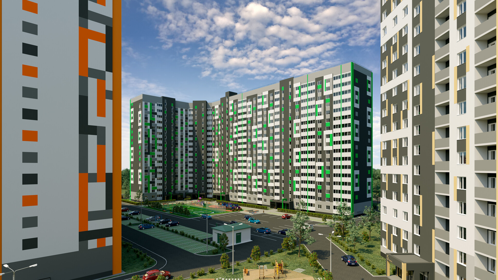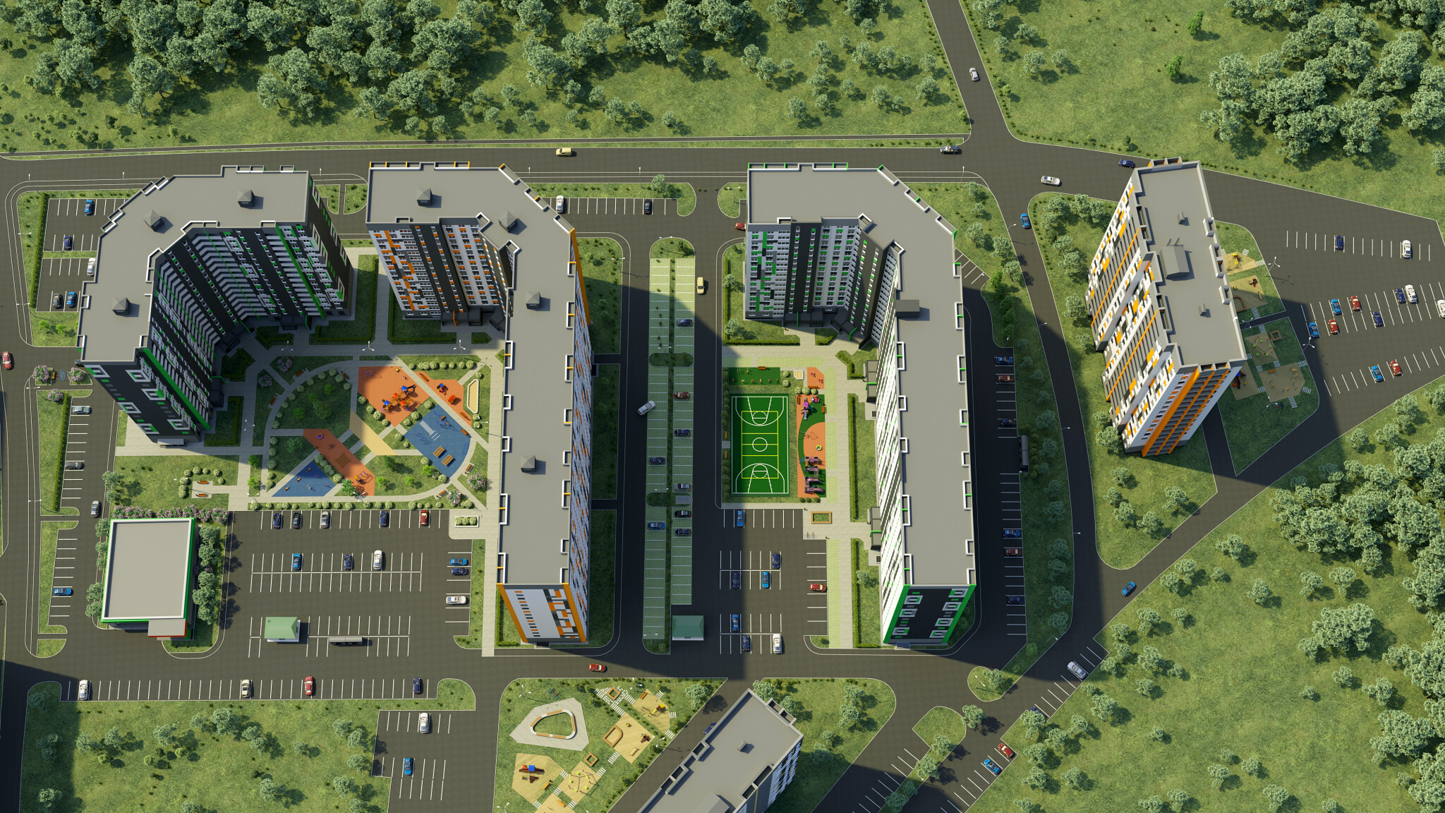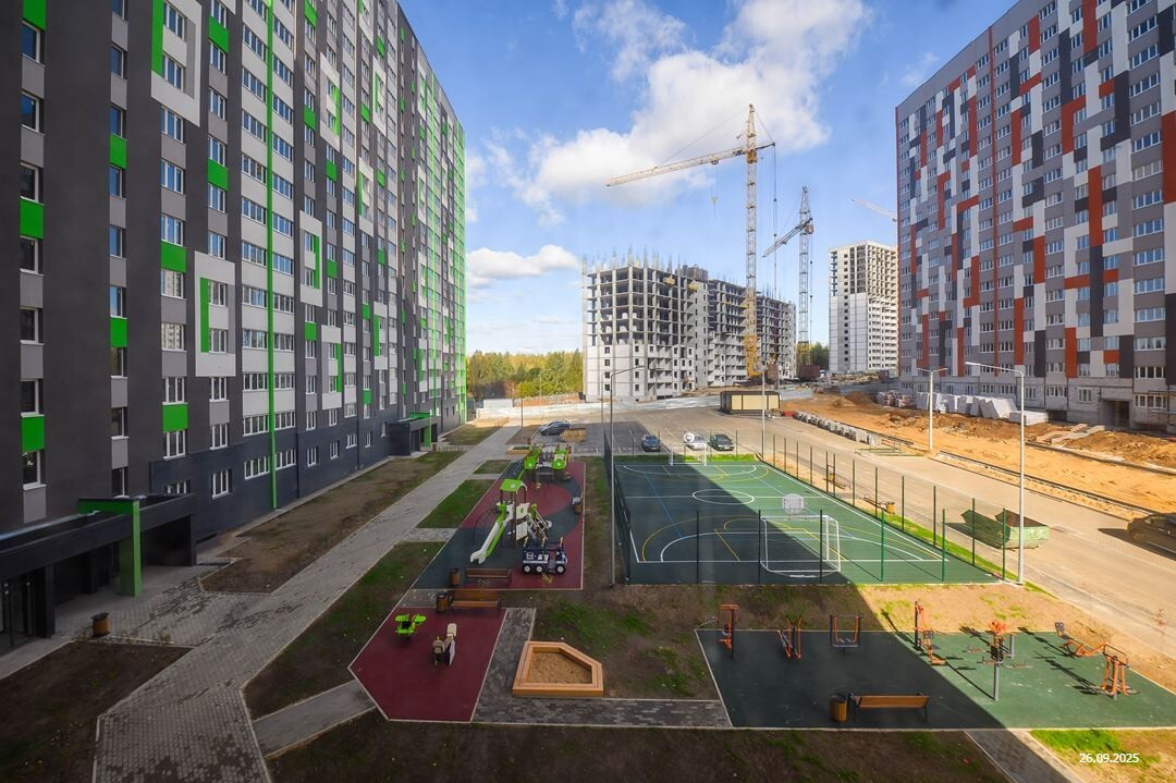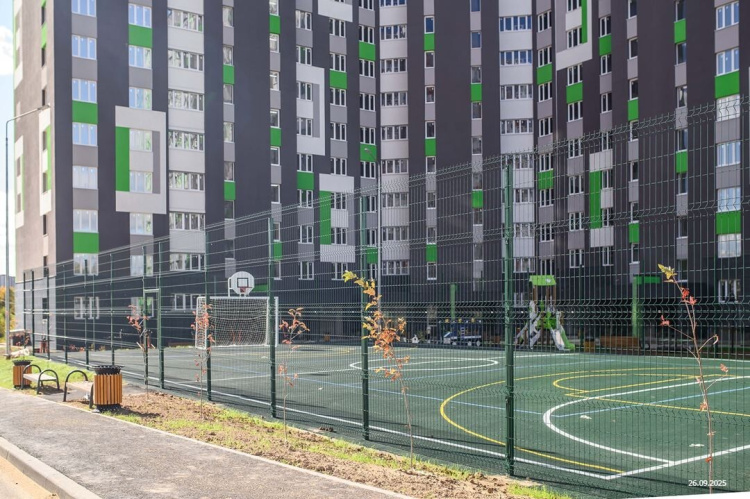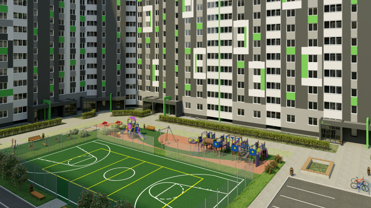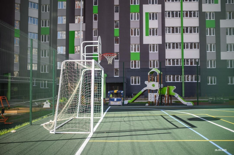 *Двор без машин и уютными пешеходными, игровыми и спортивными зонами