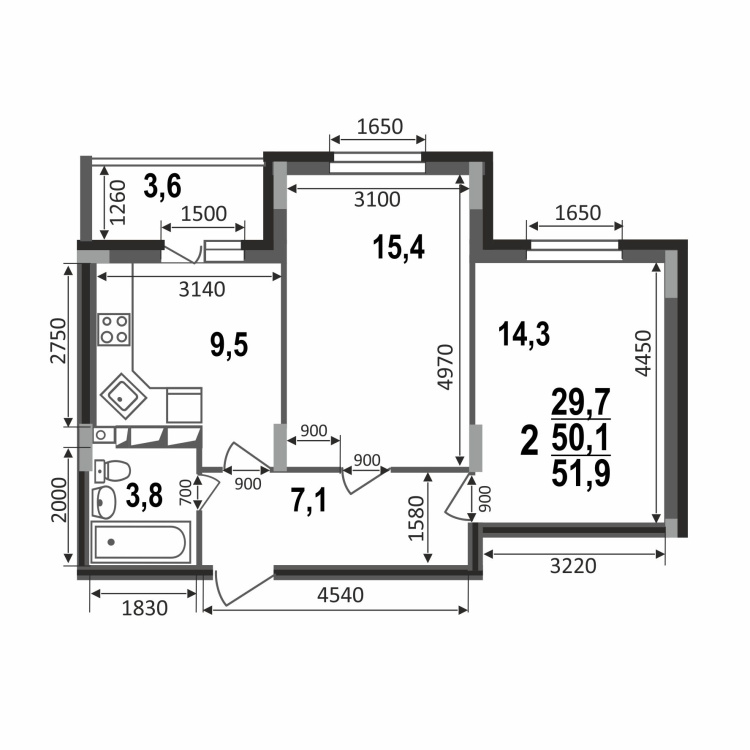 2-комнатная квартира