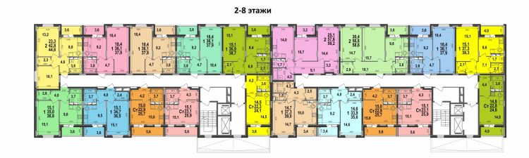 Дом максимально ориентирован на потребности клиентов, поэтому в нем много бюджетных однокомнатных квартир и квартир-студий. При этом, клиенты, желающие улучшить свои жилищные условия, могут выбрать из нескольких вариантов 2-х и 3-х комнатных квартир.