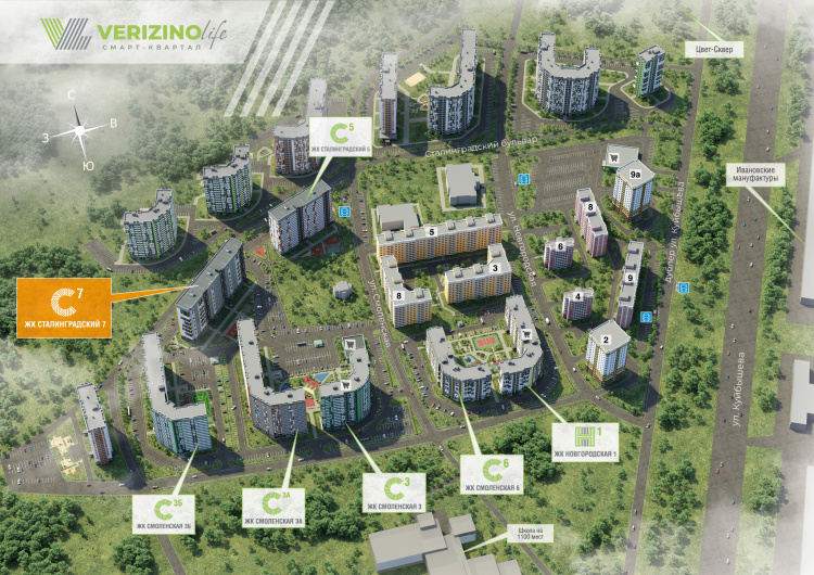 ЖК Сталинградский бульвар 7 - это 17-этажный монолитный дом СЕМЕЙНОГО ФОРМАТА строящийся в рамках большого проекта комплексной застройки от ГК "Континент", смарт-квартала VERIZINO life. Это седьмой дом квартала, в котором открыты продажи.