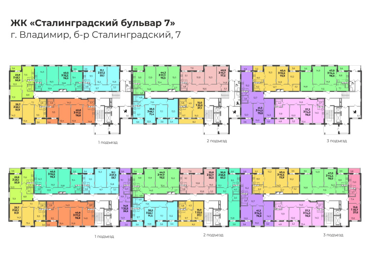 Дом максимально ориентирован на проживание семей с детьми, поэтому более 80% квартир в нем являются 2-х и 3-х комнатными: