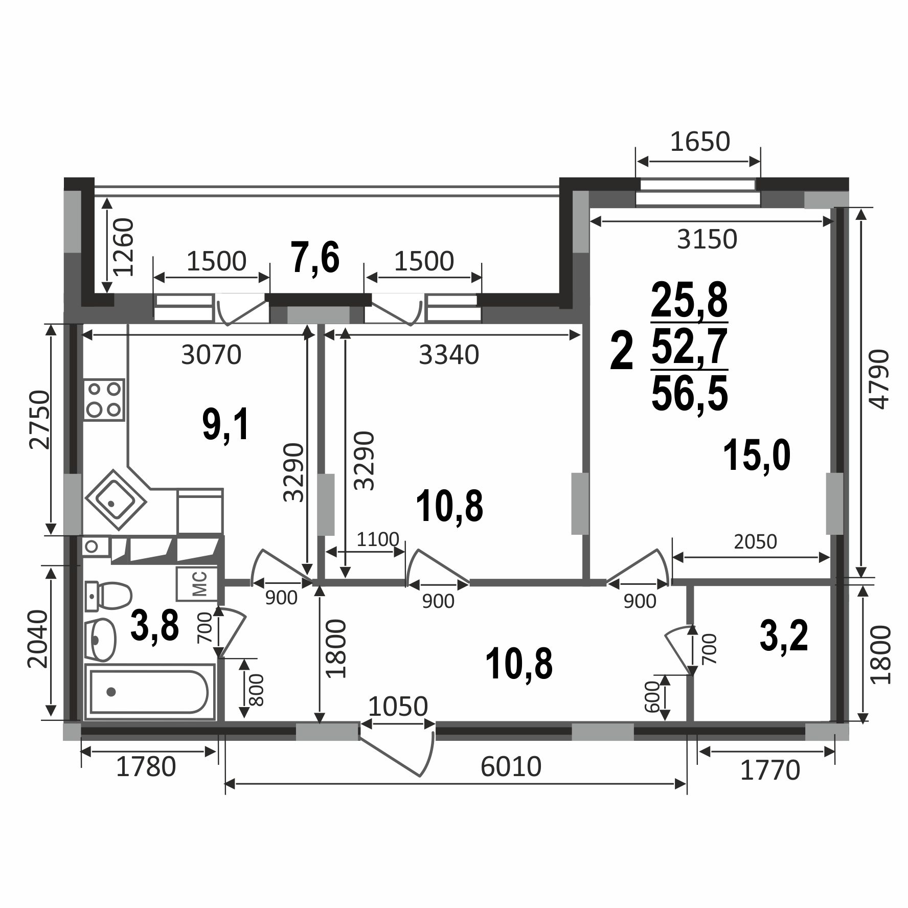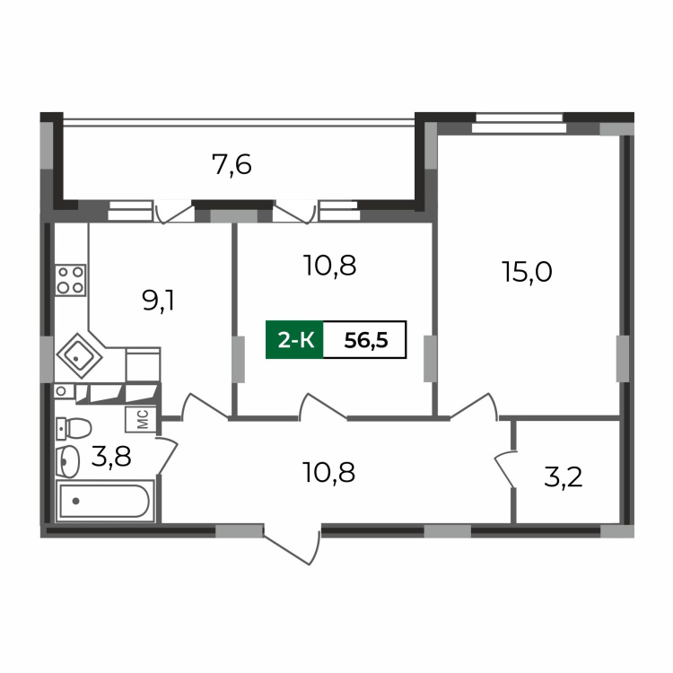 Предлагаем вашему вниманию светлую и просторную 2-комнатную квартиру площадью 56,5 кв.м, идеально подходящую для комфортного проживания.