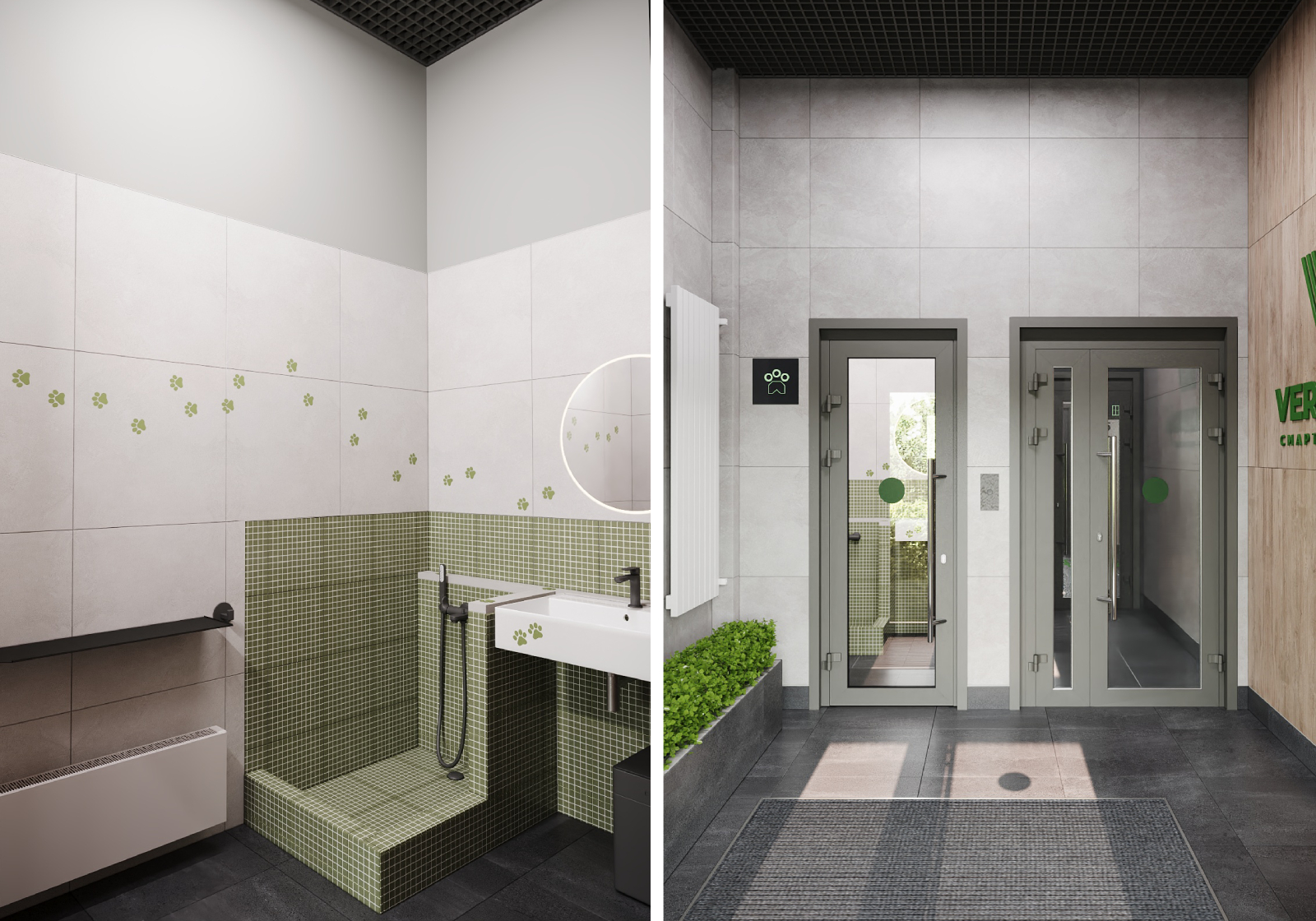 — двор без машин с уютными пешеходными, игровыми и спортивными зонами