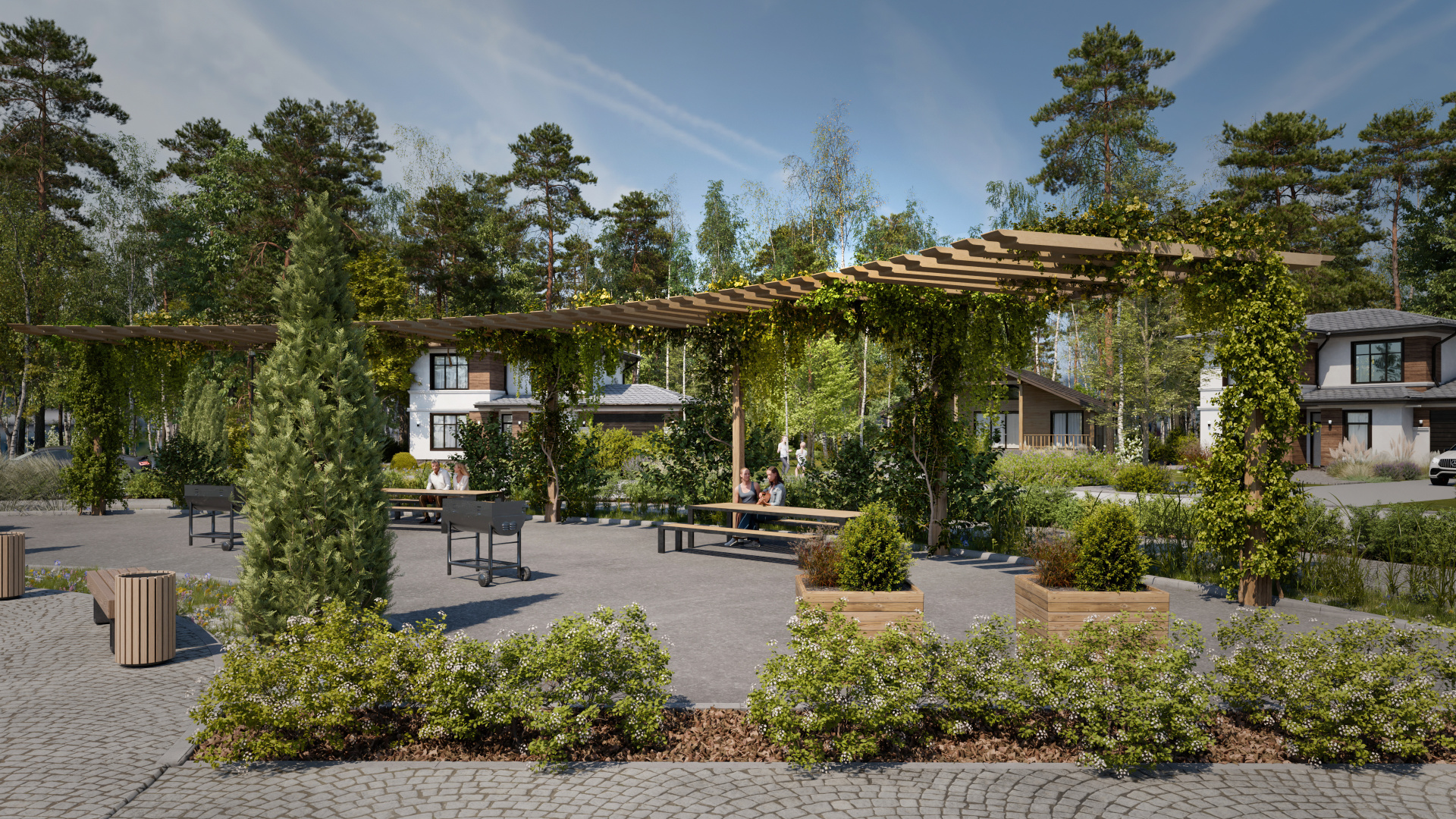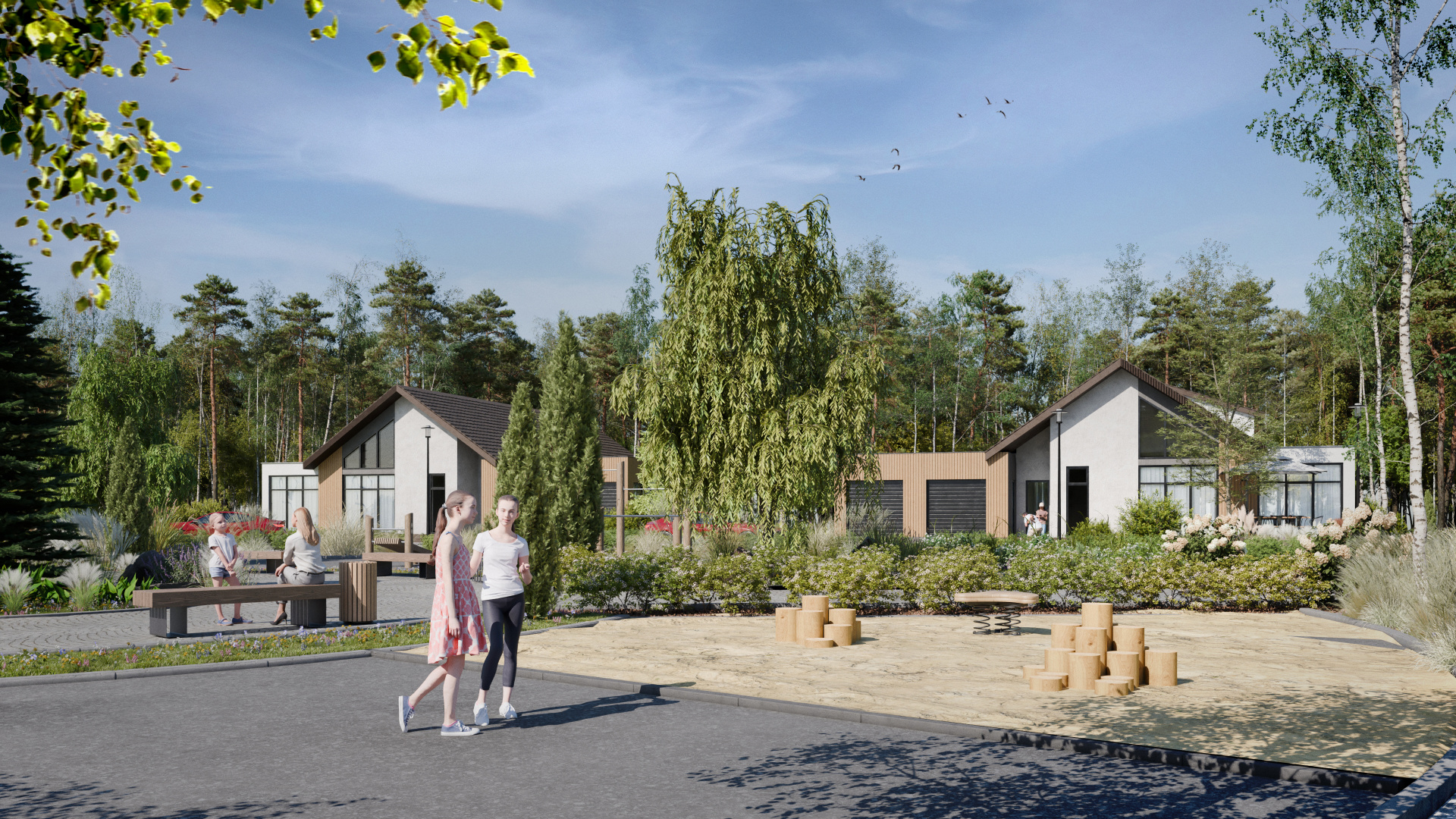 Поселок расположен в 11 км от города. В поселке будет выполнено благоустройство территории, которая впоследствии будет разделена на три локации: