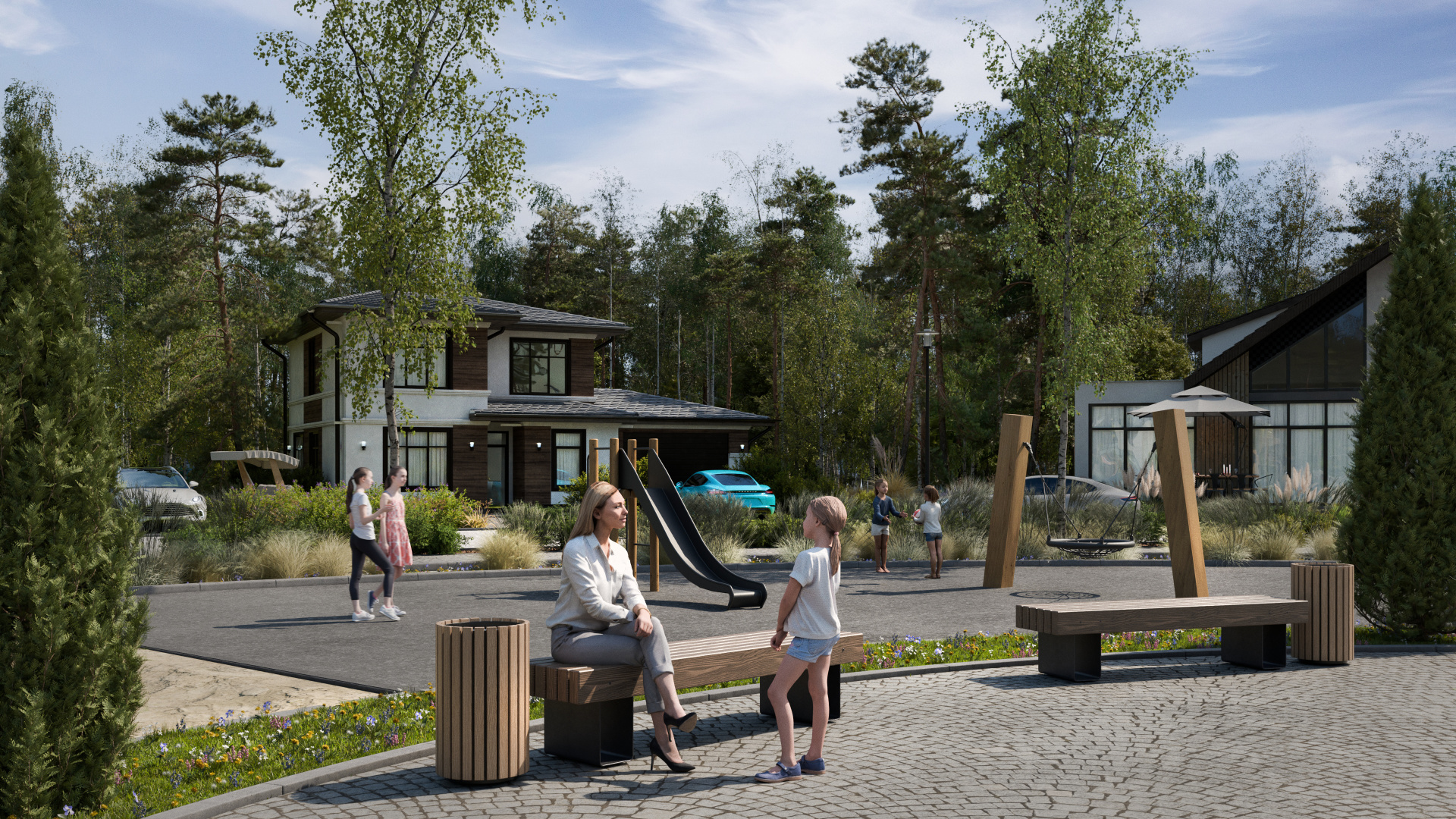 детскую, спортивную и зону отдыха