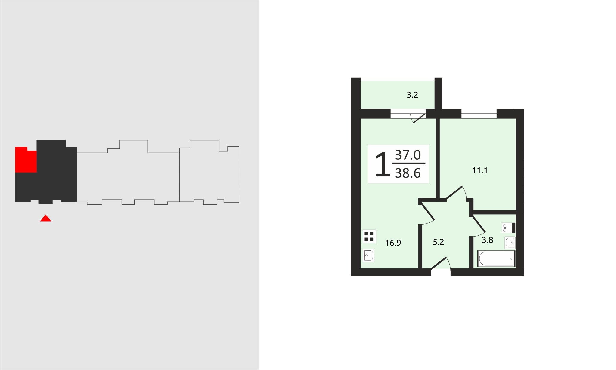 1-комнатная квартира