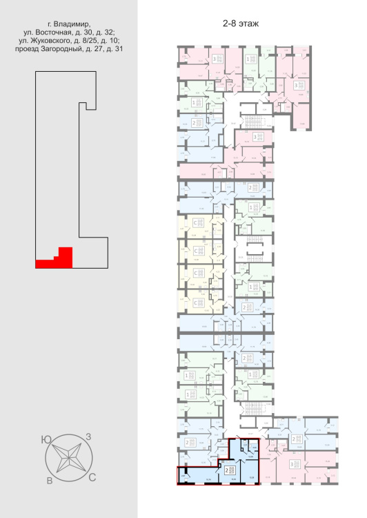 Жилой дом имеет 8 жилых этажей и цокольный этаж с помещениями коммерческого назначения.