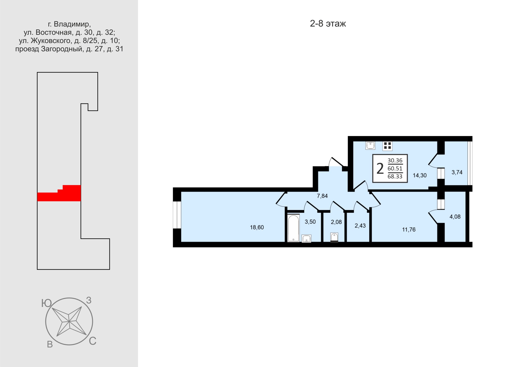 Жилой дом имеет 8 жилых этажей и цокольный этаж с помещениями коммерческого назначения.
