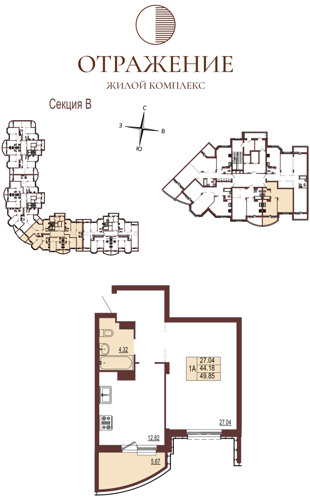 Квартира № 81, секция В, Корпус № 1( ЗУ-1) в новостройке напрямую от ЗАСТРОЙЩИКА.